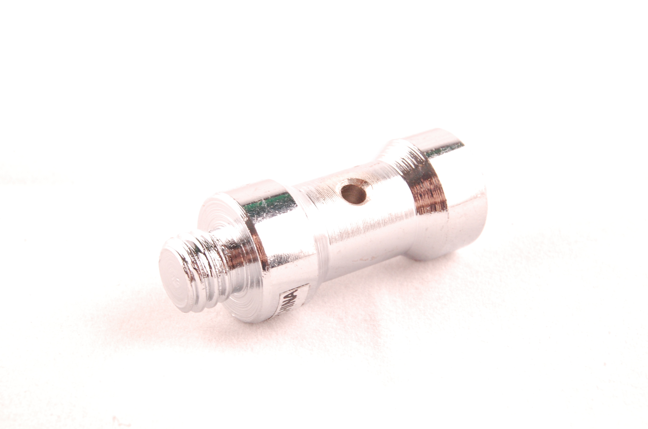 one side is 1/4inch screw and the other side is 3/8inch socket